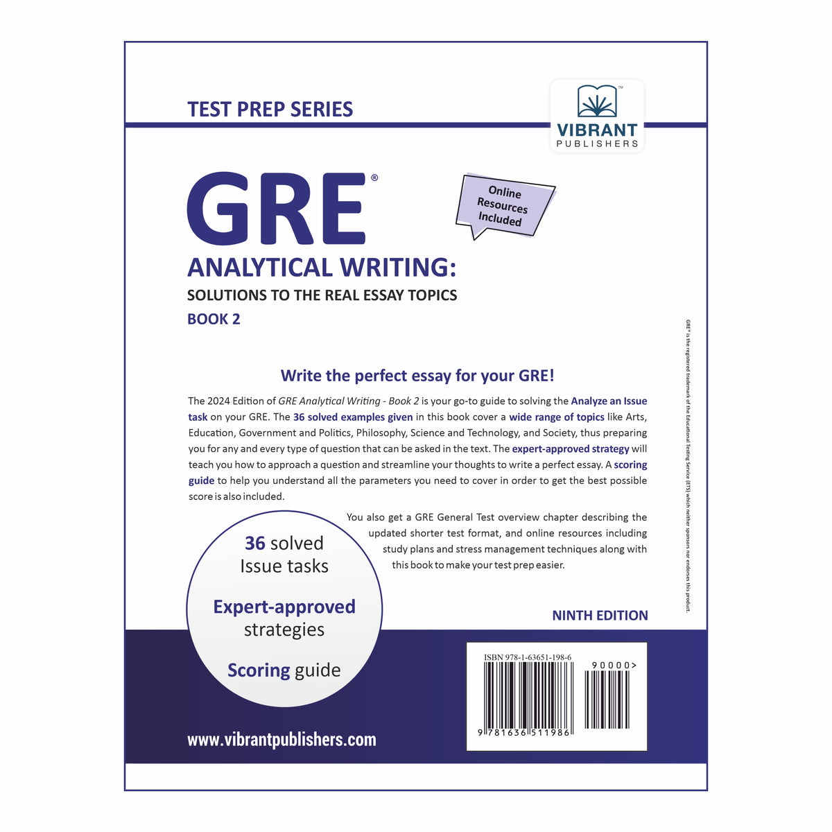 The 2024 Edition of GRE Analytical Writing - Book 2 is a complete guide to writing a flawless essay for the "Analyze an Issue" task on your GRE. It comes with: