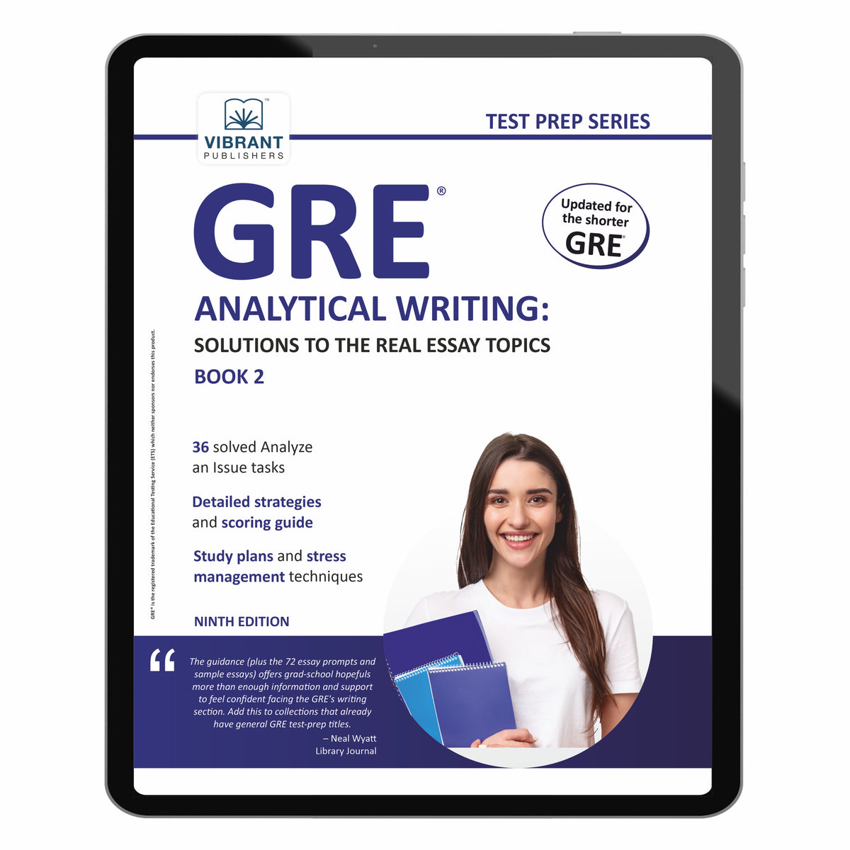 The GRE Analytical Writing book provides comprehensive solutions to real essay topics. The sample essays and the breakdown of each response are incredibly useful for anyone looking to score high in the writing section. It's a valuable resource for effective GRE preparation.