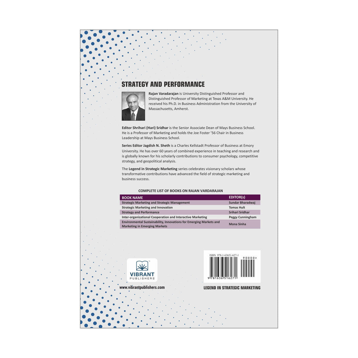 The Legend in Strategic Marketing series from Vibrant Publishers is a distinguished collection that honors the pioneering contributions of Rajan Vardarajan, a leading figure in the field of strategic marketing. Building on the success of the Legend in Marketing series by Jagdish N. Sheth, this series explores the evolution of marketing strategy, emphasizing the strategic foundations that drive business success in todayās competitive landscape.Each book in the Legend in Strategic Marketing series is dedicated to Rajan Vardarajanās most influential works, highlighting his groundbreaking research and thought leadership in the areas of market segmentation, competitive strategy, brand positioning, and marketing innovation. These seminal writings reflect the development of strategic marketing theory over several decades, from foundational models to advanced strategic frameworks that continue to guide contemporary marketing practices.Rajan Vardarajanās contributions to the understanding of how firms can align their marketing strategies with market opportunities have shaped the strategic direction of global businesses and academic institutions alike. His work on competitive advantage and customer orientation offers a comprehensive view of how businesses can thrive in dynamic markets through effective strategic marketing decisions.The Legend in Strategic Marketing series is an essential resource for marketing scholars, graduate students, and business leaders interested in mastering the strategies that drive organizational growth and success. This collection serves as both a tribute to Rajan Vardarajanās legacy and a guide for the future of strategic marketing.
