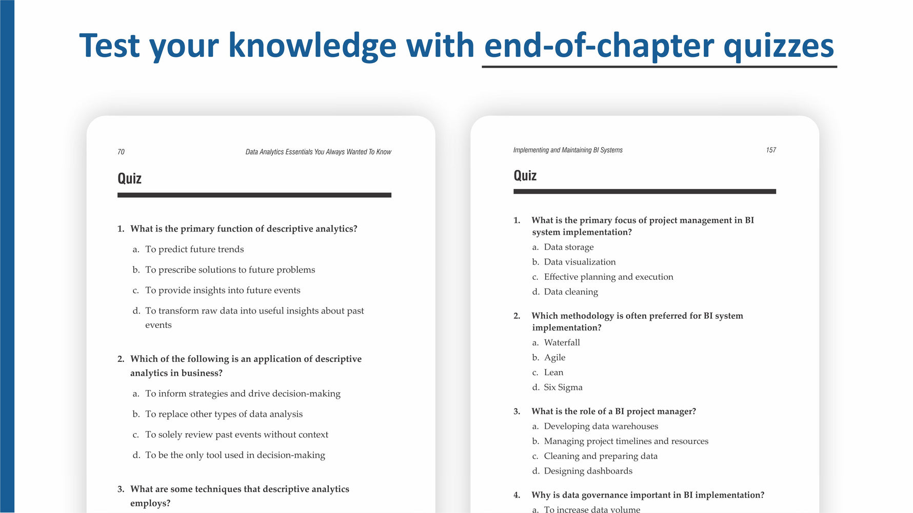 The content is tailored to those wanting practical knowledge of data analytics and BI. I especially liked the emphasis on dashboards and KPIs. A useful guide for professionals in any industry.
