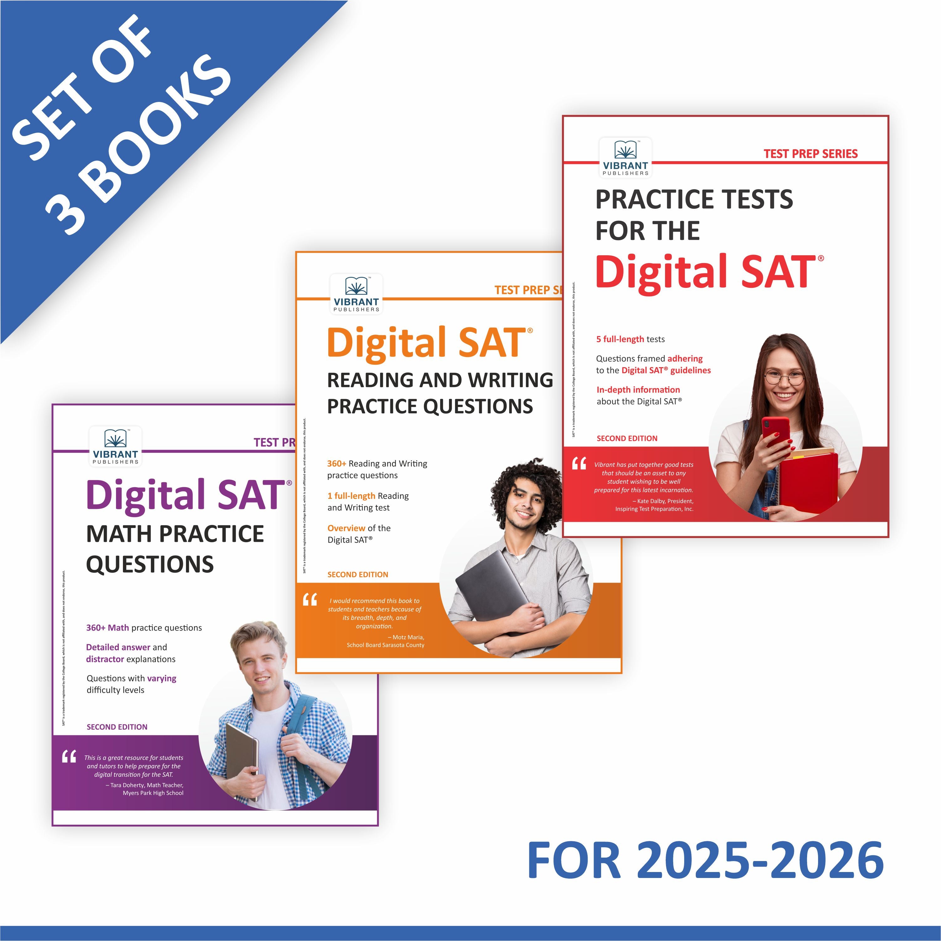 Digital SAT Prep Combo 2025–2026: Study Guide with 1200+ Questions Across 5 Full-Length Tests and Practice Questions for Reading, Writing, and Math