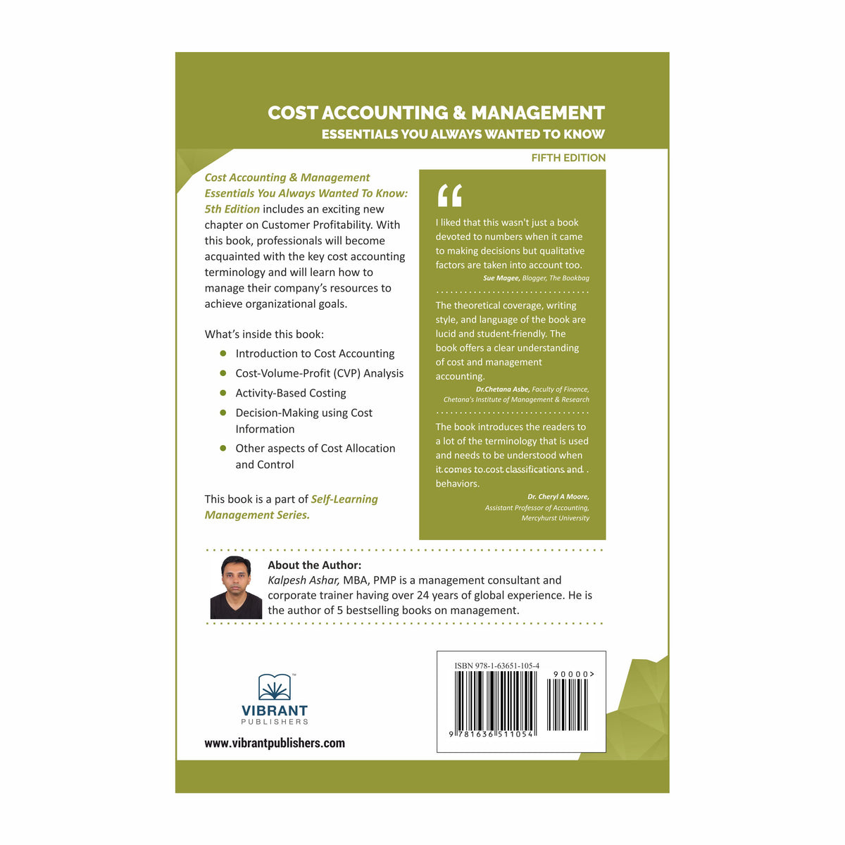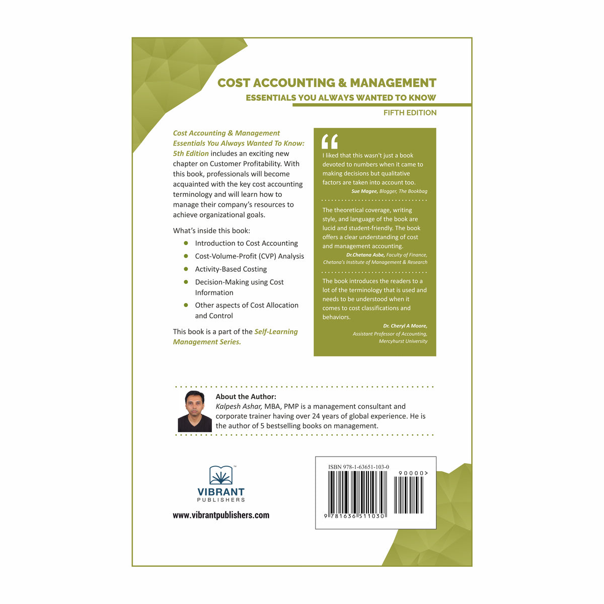 Cost Accounting & Management Essentials is ideal for working professionals moving into management roles. This book will also be useful to senior management and individuals who need to understand cost accounting numbers.