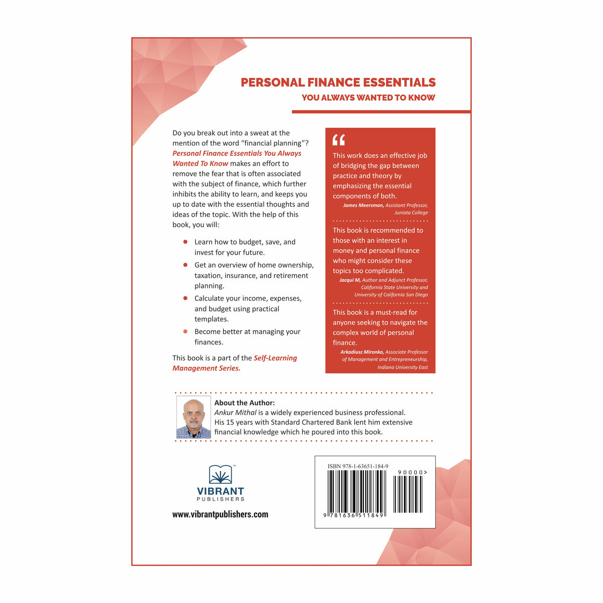 Personal Finance Essentials is a ready reckoner for individuals who would like to know more but do not know where to start. It could be you and me, or students beginning a course in Finance, or youngsters exploring different lines of education and career. It could also be an organization attempting to help employees understand money management. This book has something for everyone.