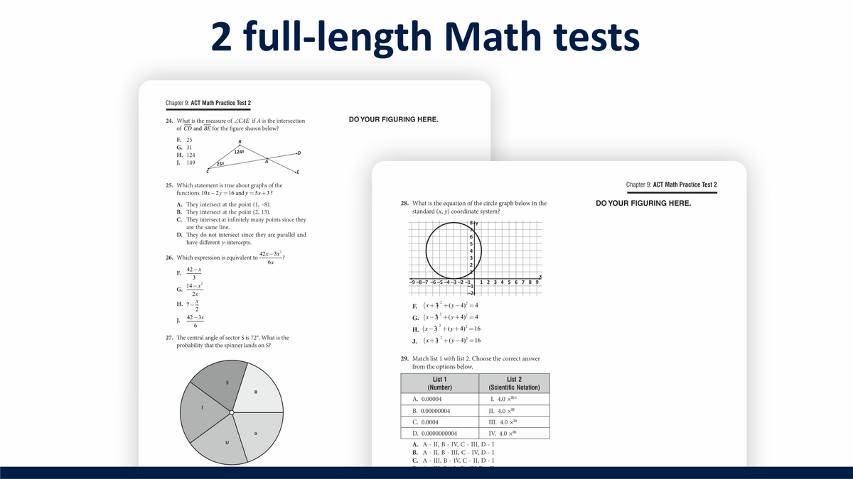 ✔️ 2 full-length Math practice tests aligned with the Enhanced ACT Format