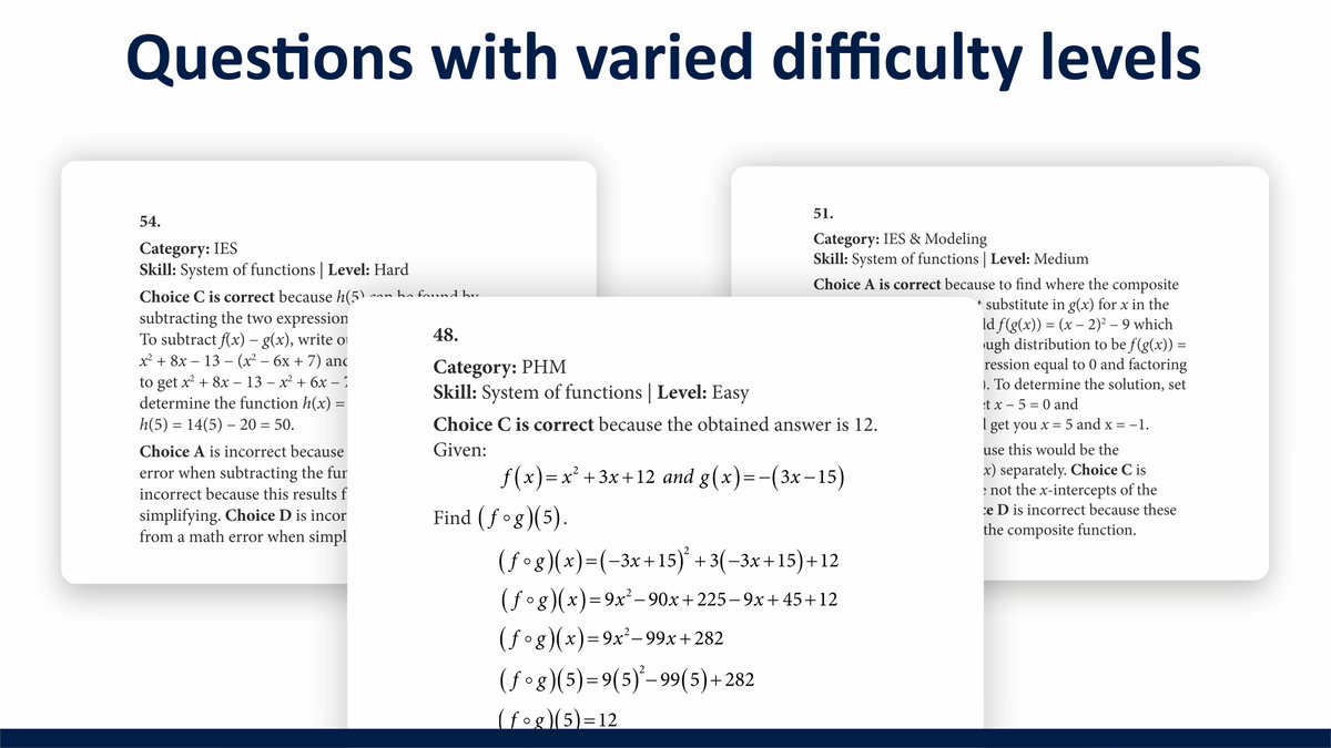 ✔️ 650+ practice questions with varied difficulty levels to build skills step-by-step