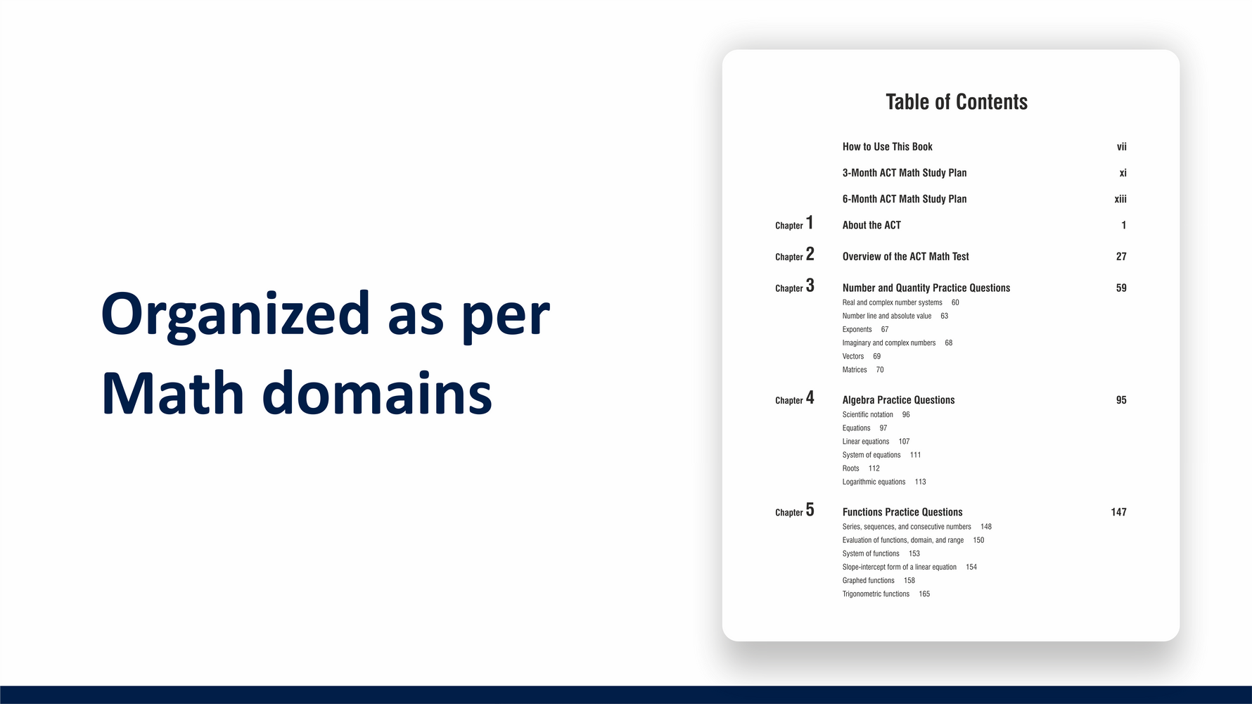 ✔️ A focused chapter on the ACT Math section, outlining question types, scoring, and strategy