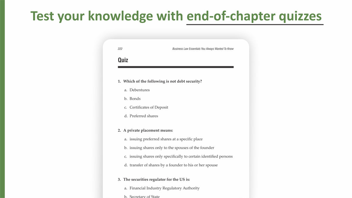 This book will give you a headstart into the field of business law and an ability to know where exactly to look, in the event an in-depth understanding of the laws is required.