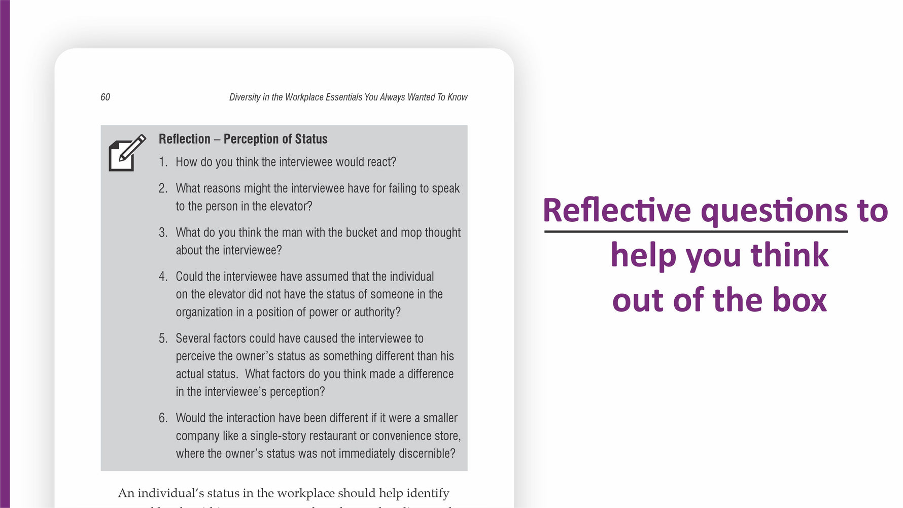 Diversity In the Workplace Essentials positions itself as an essential companion in the field, not being too nation-specific, and highlighting questions that in this age, are important to know if you want to be taken seriously in the field. Highly recommended.