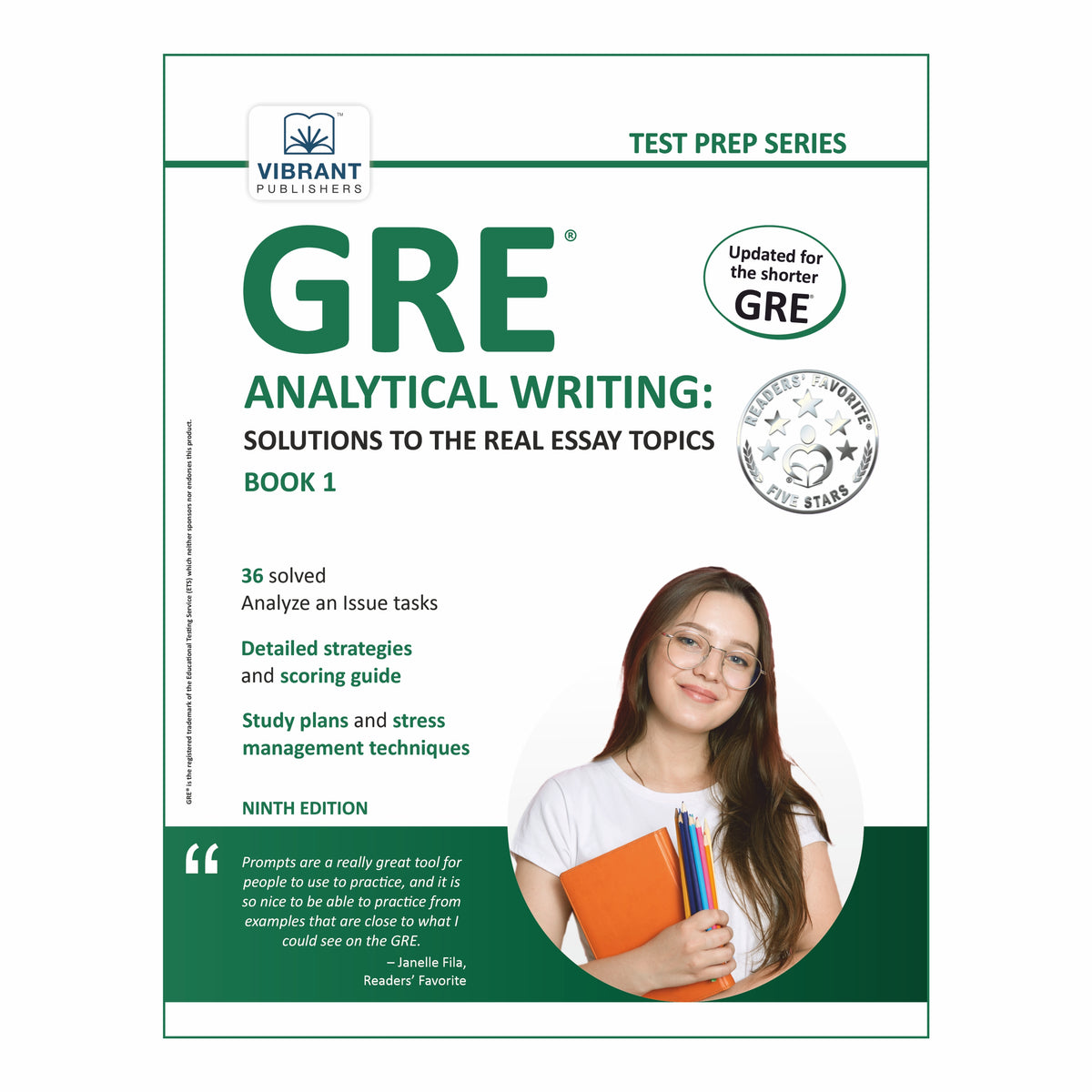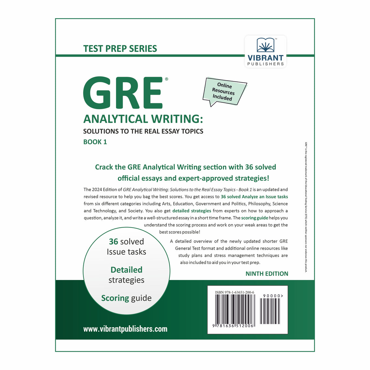 Vibrant Publishers' newly updated 2024 Edition of GRE Analytical Writing: Solutions to the Real Essay Topics - Book 1 gives you practical and real examples of well-structured essays that will help you bag the best scores. You get: