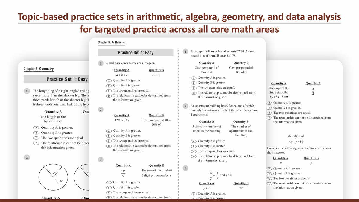- 520 Solved examples to practice and master the Quantitative Reasoning Section
