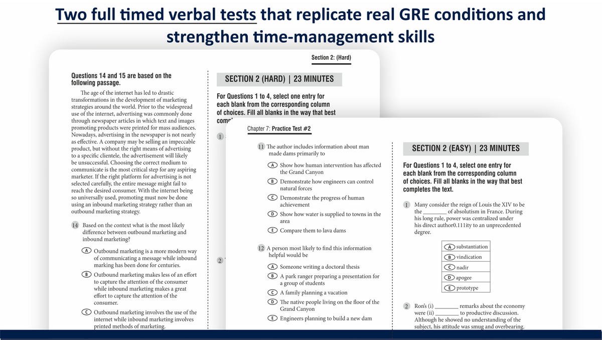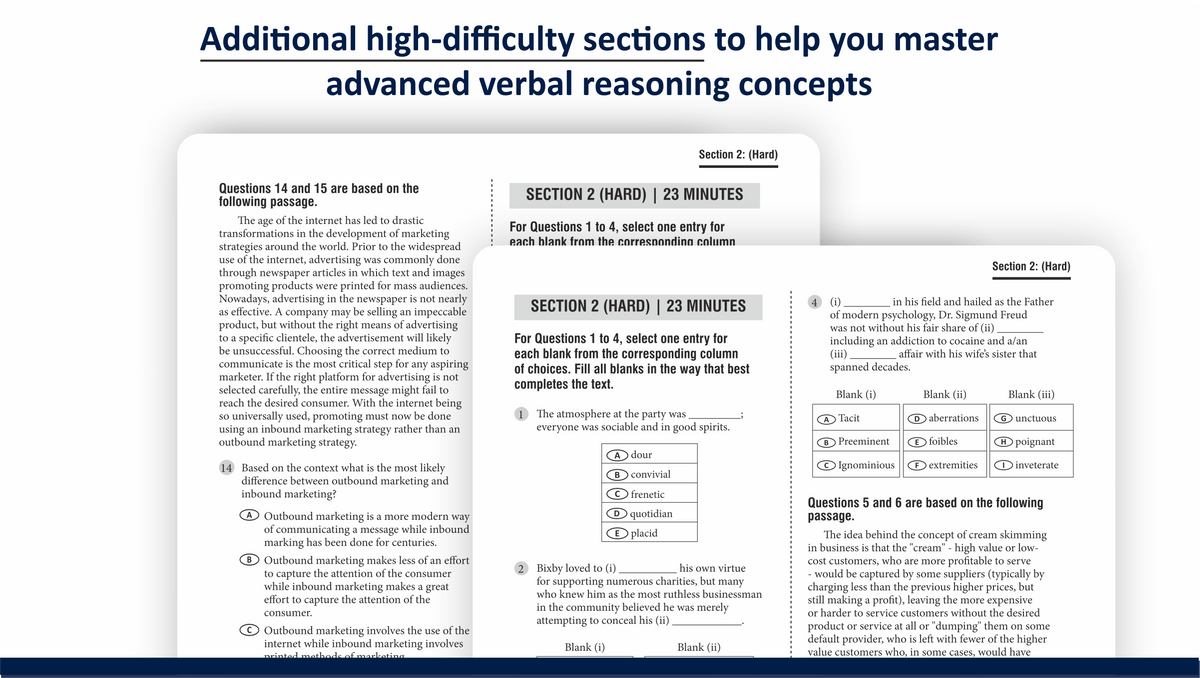 - 2 Full Verbal Tests (Timed) – Each test includes an additional high-difficulty section to simulate real test conditions.
