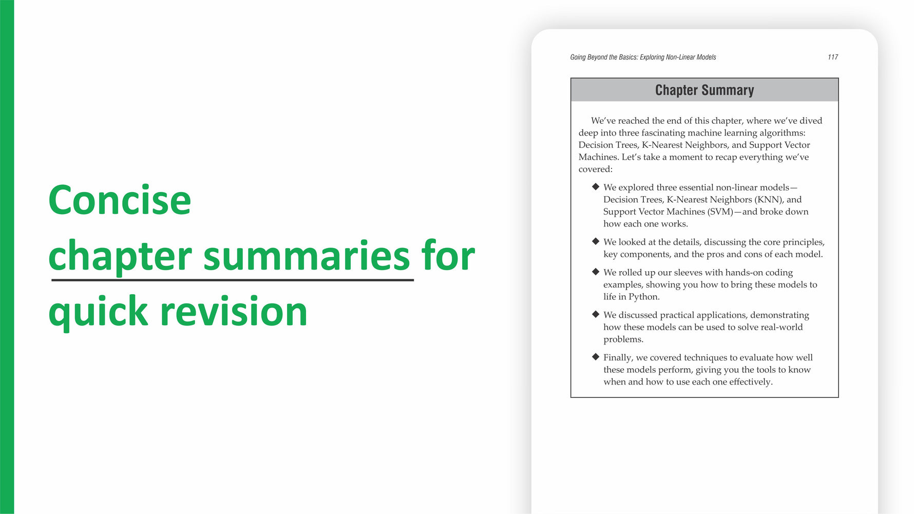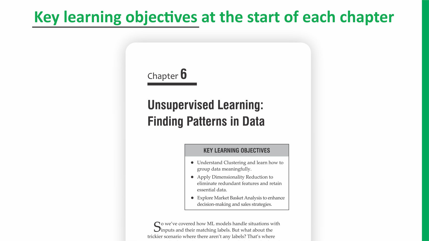The book is structured like a guided learning journey—from understanding what machine learning is, to seeing how it’s applied in real life, to writing hands-on Python code.