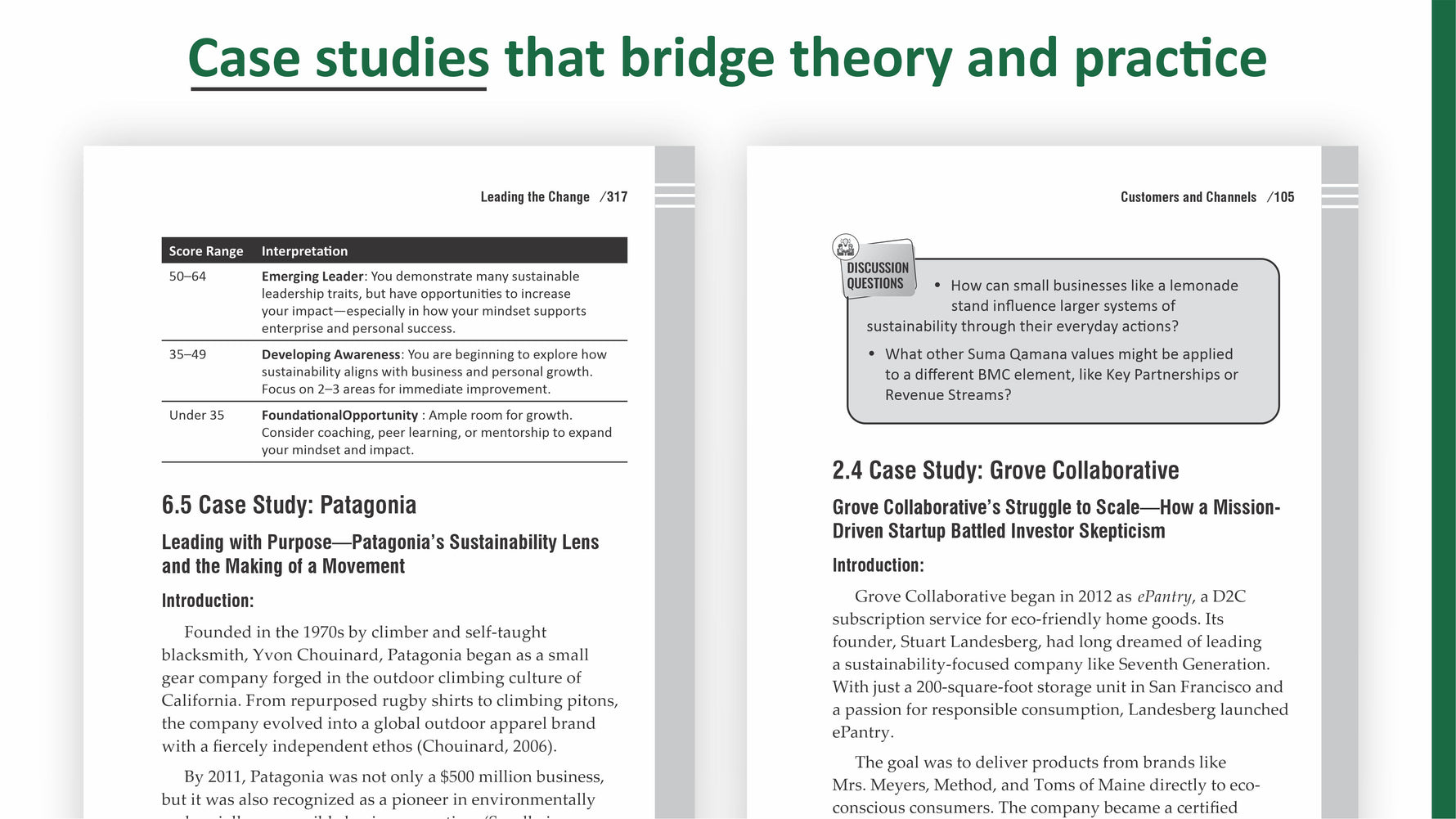 The book is grounded in the United Nations Sustainable Development Goals to show how responsible practices can drive long-term business success. It provides insight into all the critical facets and theories entrepreneurs must consider—from idea generation and analysis to operations and impact—while illustrating concepts through strong, practical, and relevant examples.