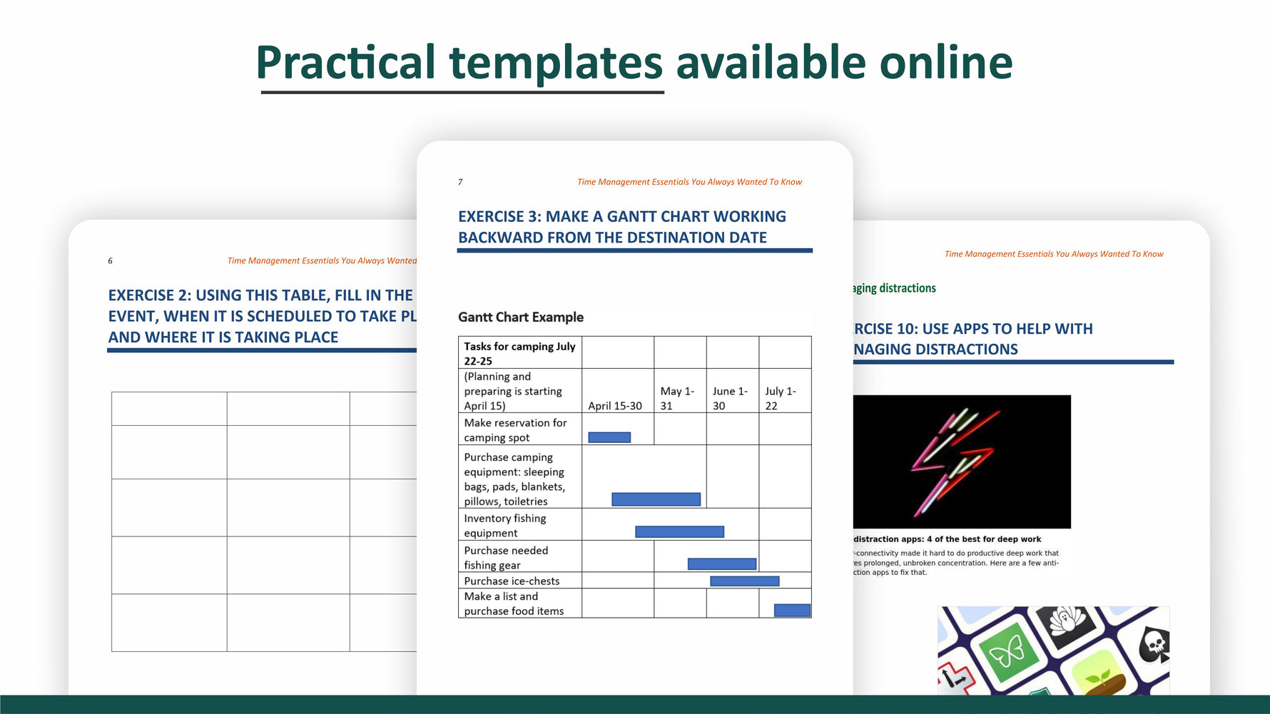 Working Backwards and Time-Blocking charts are useful tips given by the author. The quizzes at the end of every chapter are a nice way to recall the chapter.